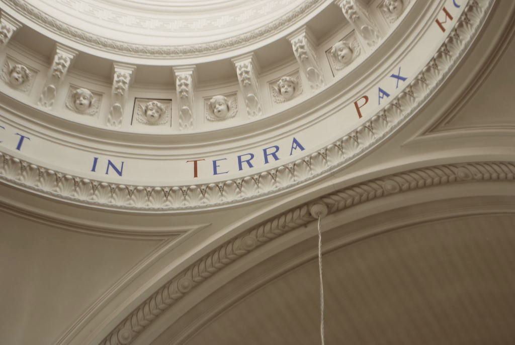Bij het naderen van de kerk scheen er een zwak licht door de raampjes van de koepel. In het kerkportaal brandden enkele kaarsen. Omdat er geen elektriciteit voorziening meer was, was aan de gemeenteleden gevraagd om ieder voor zich een kandelaar of lantaarn met kaars mee te brengen. De kaarsen van de kerk en bij de mensen thuis waren schaars, zodat er zuinig mee omgegaan moest worden. Toch had men zoveel mogelijk een lichtje meegebracht voor deze bijzondere nacht. Wie enigszins kon had zich door de duisternis en kou gewaagd om mee te vieren. Het was steenkoud in de kerk. Je zag ademwolkjes bij de lichtpuntjes opstijgen. Het was niet moeilijk om je de situatie van de herders buiten op de velden van Bethlehem in te denken ! De engelen lieten zich helaas niet zien. Maar het ‘Vrede op aarde’ heeft waarschijnlijk nog nooit zo intens en verlangend geklonken!
