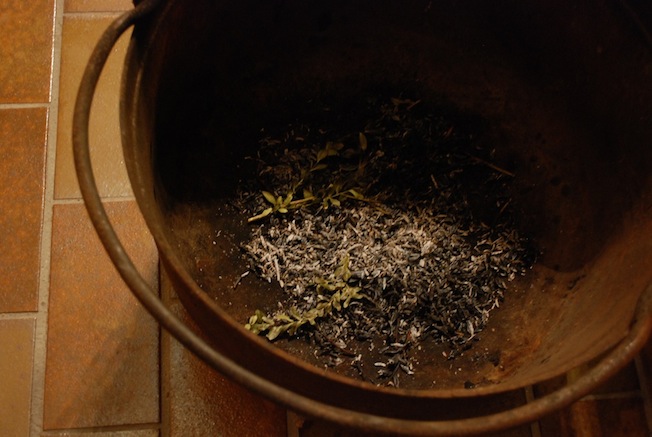 Op Aswoensdag laten katholieken en sommige protestantse gelovigen in de kerk een kruis met as op hun voorhoofd tekenen of op de kruin strooien. De as is afkomstig van verbrande ‘palm’takken, de gewijde takken die tijdens de processie van Palmpasen 2017 werden meegenomen in onze rondgang door de buurt. Het kleine ritueel wordt uitgevoerd ter bezinning en als uiting van boetvaardigheid.