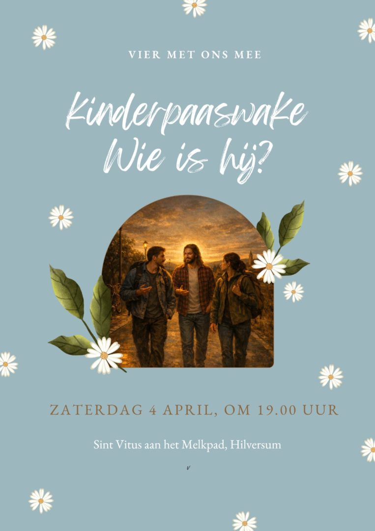 Bij een vuur op het kerkplein, daar begint de kinderpaaswake. Daar zijn woorden te horen die warmte geven en daar is licht te vinden dat we kunnen meenemen de donkere kerk in.